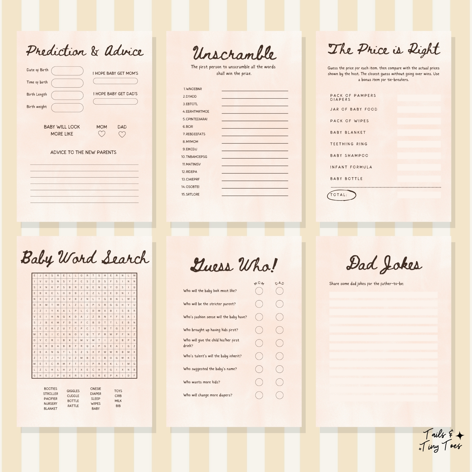 • 6 Editable Baby Shower Game Cards (A4 size)