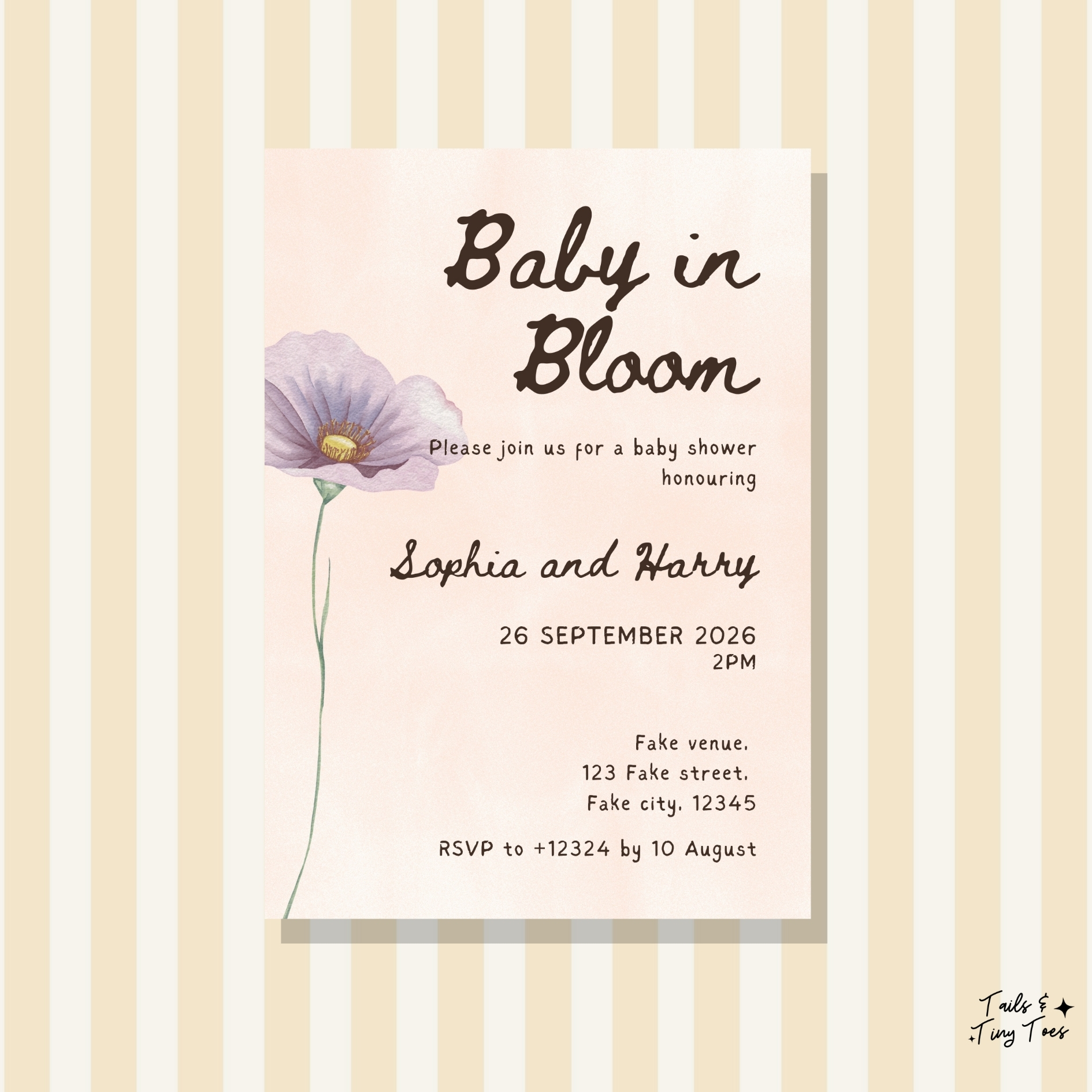 - Edit all text, colours, and event details to match your baby shower.